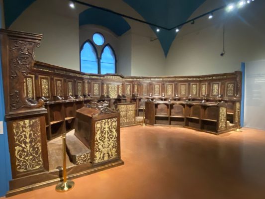 Intarsiato e dipinto, della chiesa di San Marino (inizi sec. XVI), finanziando le operazioni preliminari di documentazione fotografica, prima pulitura, smontaggio, trasporto presso i Musei civici, mappatura e consolidamento della struttura lignea.